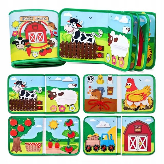 Zaprojektowana zgodnie z założeniami metody Montessori, książka pomaga w nauce rozpoznawania zwierząt hodowlanych, roślin oraz codziennych zajęć na farmie, takich jak karmienie krów, zbieranie owoców czy obsługa maszyn rolniczych. Dzieci uczą się również poprzez zabawę motoryczną, rozwijając precyzję ruchów, koordynację wzrokowo-ruchową oraz zdolności poznawcze. To produkt, który sprzyja logicznemu myśleniu, rozwiązywaniu problemów oraz samodzielnej eksploracji.