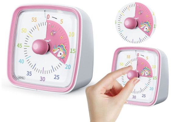 Minutnik posiada pokrętło, które po użyciu zapełnia tarczę wyjątkowym motywem jednorożca co jeszcze bardziej przyciąga uwagę dziecka. Minutnik jest zaprojektowany z myślą o edukacji i zabawie, co sprawia, że jest idealny dla dzieci, które uczą się czytać czas. Jego przyjazny design i kolorowe wskazówki czynią naukę czasu łatwą i przyjemną.