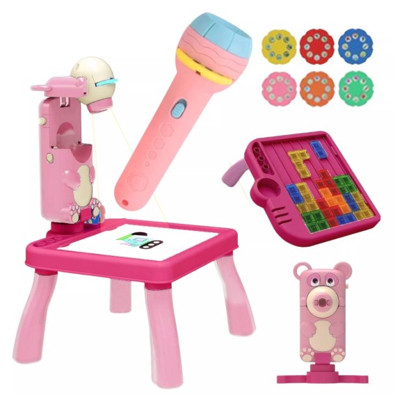 Projektor do rysowania w kształcie misia ze stoliczkiem i klockami Tetris